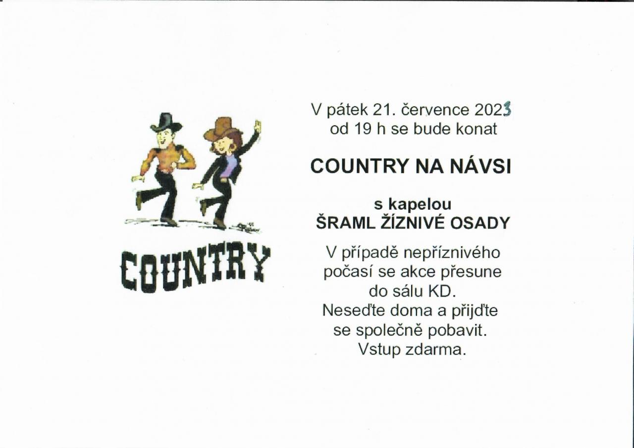 Kostomlaty pod Řípem Vás zvou v pátek 21.7. 2023 od 19:00 na COUNTRY NA NÁVSI. Hraje kapela ŠRAML ŽÍZNIVÉ OSADY. Více informací viz. přiložený leták.