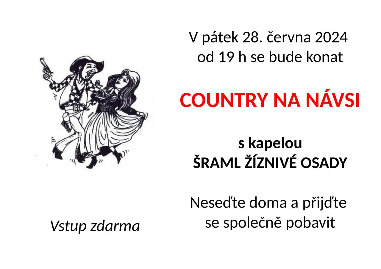 Kostomlaty pod Řípem Vás zvou v pátek 28.6. 2024 od 19:00 na COUNTRY NA NÁVSI. Hraje kapela ŠRAML ŽÍZNIVÉ OSADY. Více informací viz. přiložený leták.